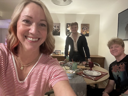 That was all just perfect, a truly memorable time and one of the very best Christmas Eves I can remember. But wait, like Ginsu knives, there was more! The boys came back over late Christmas morning after they opened gifts with their dad’s family, and we had oven-fresh monkey bread and exchanged our own presents. They got plenty of stocking gifts, which I so enjoyed, and they did too. I felt so cherished and loved by them, with just-right gifts that made me feel well appreciated.