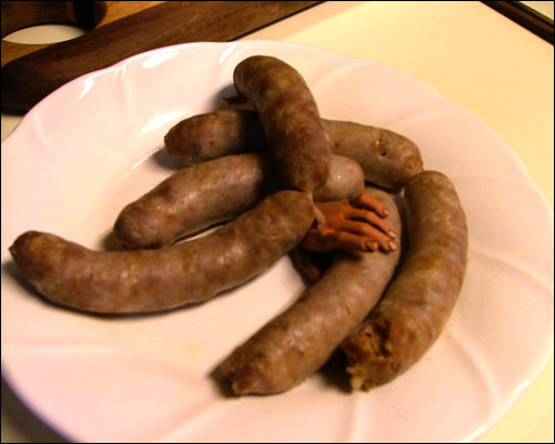 Anyway. So this morning, JB came to kiss me goodbye before leaving for work. "I left out some sausages for you," he told me. "I cooked a bunch extra." Aw. Extra sausages, just for me. Little did I know I would be faced with THIS when I got up: