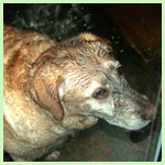 A Dog, a puddle, a LOT of mud.