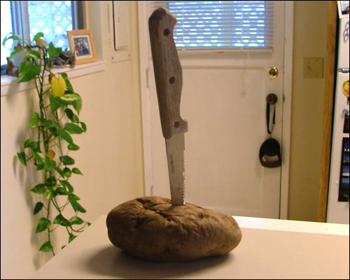 That little otherworldly conversation happened about 3 days ago, and the potato (I mean, radio) is still on the counter. The in-dire-need-of-409-ing, crumb-laden counter, which is above the strewn-with-dog-fur-tumbleweeds kitchen floor, which is adjacent to the piled-with-newspapers dining room table, which - well, what I'm trying to say here is that the nesting instinct, it has not exactly kicked in.
