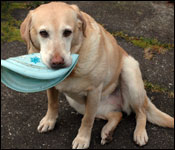 | Thursday, March 9, 2006 Our house is feeling slightly chaotic these days as the remodel gets underway. For the past two weeks there have been contractors framing in the new construction and the east end of the house is boisterous with hammering, shouted conversations, and the eternal blare of a radio. The driveway contains both a giant dumpster and a Honey Bucket (which I briefly considered emergency backup over the Weekend of Stomach Horror). Our bedroom has been laid open to the elements, with only a plywood wall and a great flapping sheet of plastic to protect us from being devoured by raccoons at night. We're stuck using the cramped guest bathroom, with its plagued-by-galvanized-pipes tendency to turn the water a startling shade of red, which always reminds me of that awful scene in Poltergeist when the guy looks in the bathroom mirror and sees himself ripping off pieces of his own face, jesus, oh and also the guest tub has hoopty-ass faucet controls that turn the wrong direction. So there are some inconveniences, but things are coming along. We were pleasantly surprised to find that lurking under our dingy carpeting are some beautiful oak hardwood floors (also, unspeakably disgusting drifts of a fine grey powder that I suspect is the distilled DNA of every prior resident's skin sheddings over the last 50 years), although to restore them to their prior glory takes some thought. Do we refinish the flooring one room at a time and expose the household to deadly toxins in intervals, hopefully triggering a series of genetic mutations that result in Riley growing a useful set of tentacles? Or do it all in one fell swoop, somehow moving every single item of furniture we own off the floor at the same time via telekinesis or similar? Now, you may be thinking that hardwood floors don't sound like the best bet for a household with a small child who presumably is going to follow his evolutionary destiny by walking upright someday, but it really comes down to what's better: an abrasion, or a contusion? Well, abrasions require bandaids, and bandaids hurt when you pull them off - the bruise is clearly preferable! Sure, carpeting provides a little padding, but no one likes a toddler with a rug burn. Scabby children are gross. Don't look at me like that - they are. The one who's feeling the most impact from all this Trading Spaces nonsense going on around the house is Dog. Dog, who gets freaked out when the kitchen timer goes off because oh my god it's a weird noise and make it stop make it stop make it stop, has been greatly concerned by all the strange sounds and smells and to add insult to injury there is a Construction Dog who belongs to one of the workers who spends his day snorfling around the yard and really, things are just very disturbing. I feel sorry for Dog these days. Not just because of the remodel, but for the fact that she is definitely second fiddle now to a tiny bleating creature who devours all of our energy. We try to make sure to show her attention, to make sure she gets petted and fussed over and not entirely ignored in favor of the boy, but sometimes there's only so much patience and attention that can be doled out in one day. There are times when I cannot possibly bear one more demanding entity in my life, and that's when the I deeply regret the "cute" trick Cat learned where she rings a bell tied to the front door to go outside because I AM NOT YOUR MR. BELVEDERE, CAT. Dog never makes demands, though. She only wags her tail and waits for us to remember her. The other day I was carrying a load of laundry to the utility room and I didn't see her lying in front of me until my foot solidly connected with the side of her jaw with a heart-dropping thok! sound. She scrambled hurriedly to her feet as I dropped clothes all around her and apologized, tangled my fingers in her fur and said I was sorry over and over. I could hardly bear thinking that it might have seemed to her as though I did it on purpose, just hauled off and kicked her for some unknown reason - my good dog, who has never in her life deserved anything more than a mild reprimand - and when she licked my face in response, I cried a little for having been unintentionally mean to such a sweet soul. I wanted her to understand that I was sorry I hurt her, but that I was also sorry things are different for her now; I wanted her to understand that we still love her. On Monday when the contractors were doing something particularly loud, hacking into the house with buzzsaws by the sound of it, Dog came bustling out into the living room with her stuffed squeaky toy and stood in front of me, squeaking it frantically. It was like Dog Morse Code, sort of: squeak! Squeak! Squeaky squeaky squeak! (Warning! Unusual noises detected in house! Save...the...biscuits!) While I wished I could tell her that everything was okay, and not to worry about the Construction Dog, and that when the weather's nice we're going to go for lots of walks again, I did what I could: I gave her a giant spoonful of Skippy. My love is both creamy and spreadable, Dog. ::: Good dog.