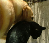 He's coming back on Sunday, not a day too soon. I hate coming home from a dreary day at work and having no company, except the pets, whose conversational skills are far surpassed by their rectum-licking abilities. I need someone to yell at the TV with me when they show those pious, bible-waving assholes camped outside of poor Terry Shiavo's hospice, carrying their little cups of holy water. I want a warm back to curl against when I come back from my fifty-seventh zombielike trip to the bathroom in the middle of the night. I miss his voice, his laughter, and even those horrible songs he sings all the time. Even his whistling. Hurry home, baby!
