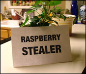 JB has some cock-and-bull story about how my container of berries "accidentally" fell on the floor when he opened the fridge and how Dog totally ate them, but you and I know what REALLY happened.