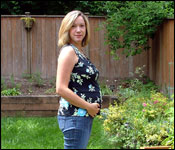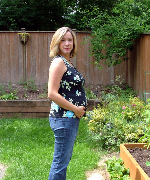 Finally - finally! - a sunny day here in Seattle, after days and days of cool weather and rain, which has been VERY ANNOYING, because I have now invested hundreds of dollars in spring/summer maternity clothes, as in SHORT SLEEVES, the kind of shit you should be able to wear, oh, in JUNE, for instance, and I have nothing, NOTHING I TELL YOU, for grey skies and 60-degree-temperatures and windy-ass bus stops. I tried to put on a previously baggy fleece top the other day, only to discover that not only did it barely stretch over my protruding protusion, it also clung in weird fleecey unflattering ways and hiked itself up about four inches, exposing the oh-so-sexy "full panel" waistband of my jeans. I have exactly one coat that still fits, and it's a filthy, bright yellow, enormous North Face jacket designed to go with summit pushes and rain forest expeditions, not so much A-line skirts.