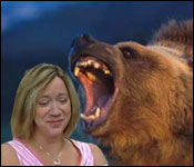 JB says I wasn't completely honest when I mentioned we had seen some bears on our vacation over the 4th. According to him I left out the fact that I sort of screamed like a, let's see, "giant sissy wimp" when we saw the first bear. To set the story straight, I admit I may have involuntarily gasped a little, but to my credit, the above photo is an accurate representation of said wildlife encounter.