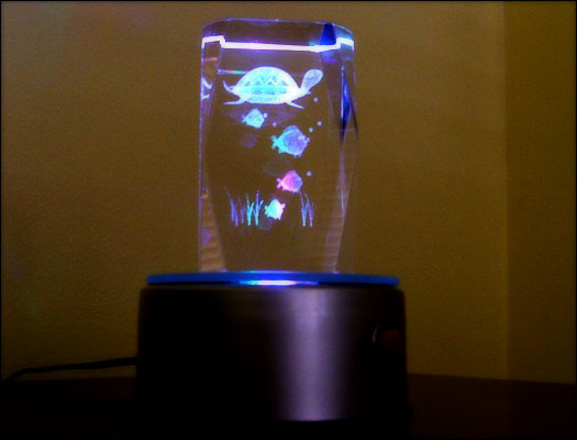 This thing projects colored lights around the room, as does our "Aquarium Wonders" mobile. The child will doubtlessly become a Grateful Dead fan.