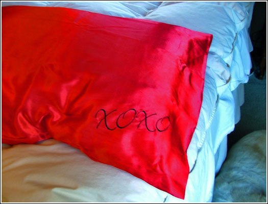 Apparently, our collective national obsession with cotton thread count has made synthetic satin bed linens a thing of the past. Despite a thorough search in both Bed Bath & Beyond and Fred Meyer, all I could unearth pillowcase-wise was an unbelievably cheesy bright red pair marked 75% off, either designed for mustachioed wannabe porn stars, or excess inventory from Valentine's Day.